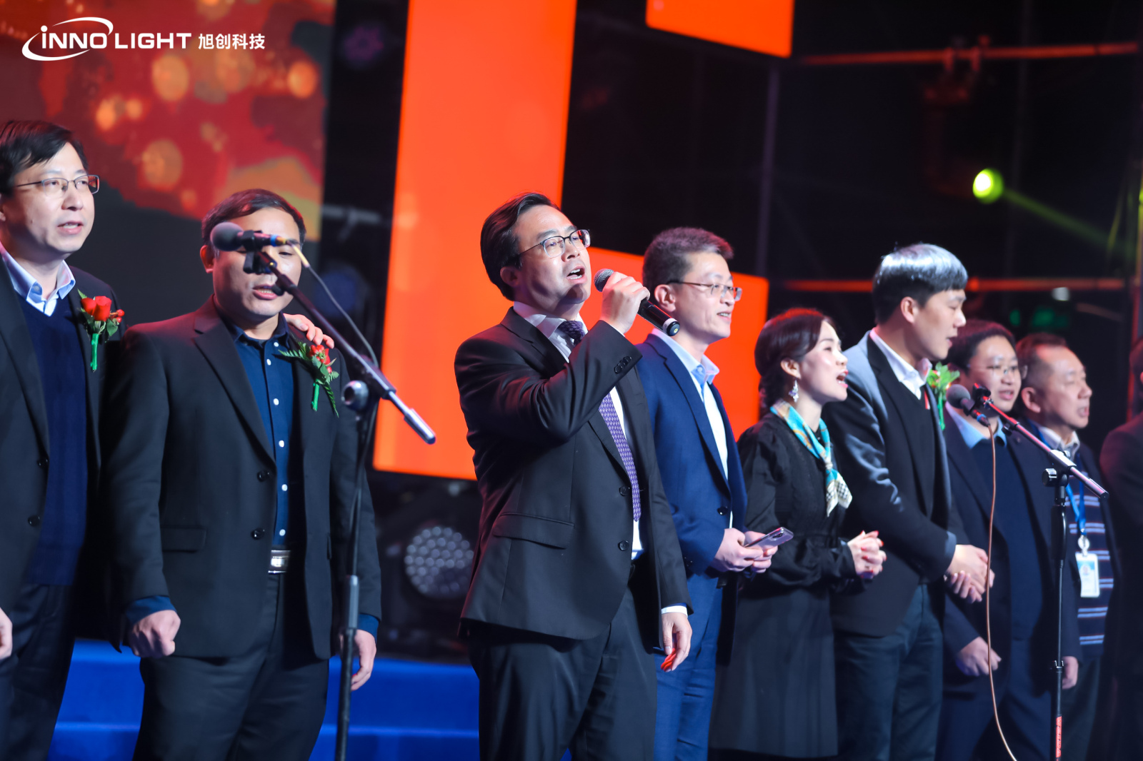 在這場年末歡聚中,旭創(chuàng)科技為默默付出的員工們頒發(fā)嘉獎、獻(xiàn)上祝福。創(chuàng)新獎、園丁獎、優(yōu)秀員工獎等等獎項(xiàng),成為最閃亮的勛章。旭創(chuàng)高管更是以一首《追夢赤子心》感謝大家的協(xié)力奔跑,愿赤子之心不變,生命因旭創(chuàng)閃耀!