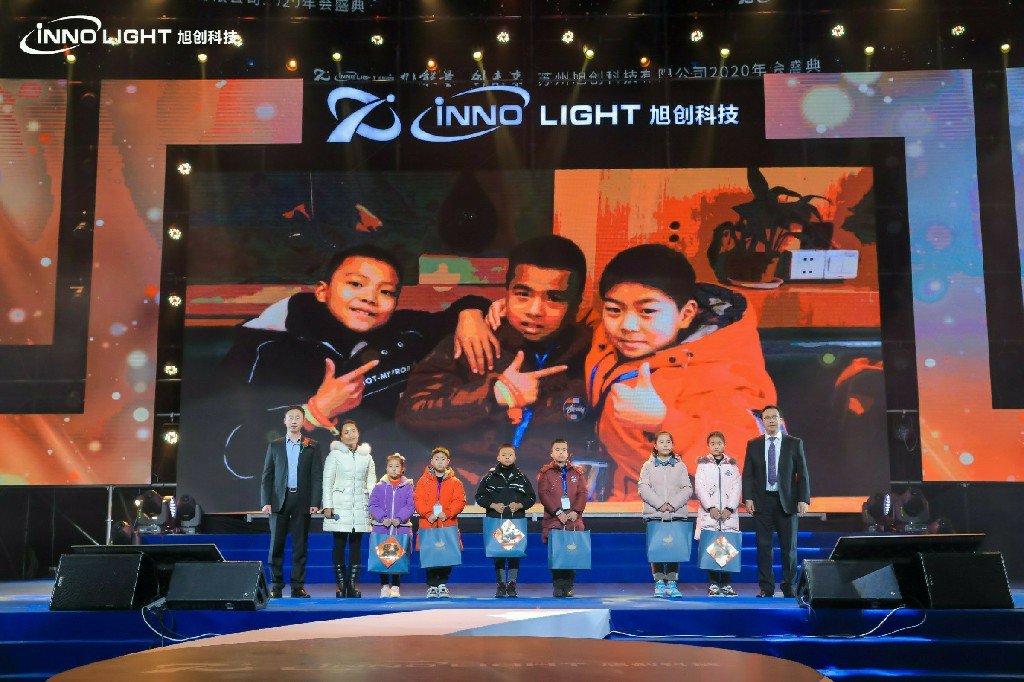 除此之外,年會現(xiàn)場還來了幾位特殊的客人。他們唱著湘西的民歌,講述著學(xué)校的變化,感恩可以來到蘇州看看外面的世界,他們是旭創(chuàng)科技通過向榮基金長年資助的湘西學(xué)校師生代表。孩子們用稚嫩的語言表達(dá)最真的謝意,旭創(chuàng)也為孩子們準(zhǔn)備了禮物,希望通過書籍給予他們生活的光芒。